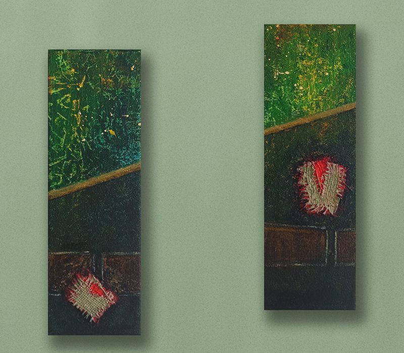 Des tableaux principalement abstraits. Travail sur la texture et les lignes.