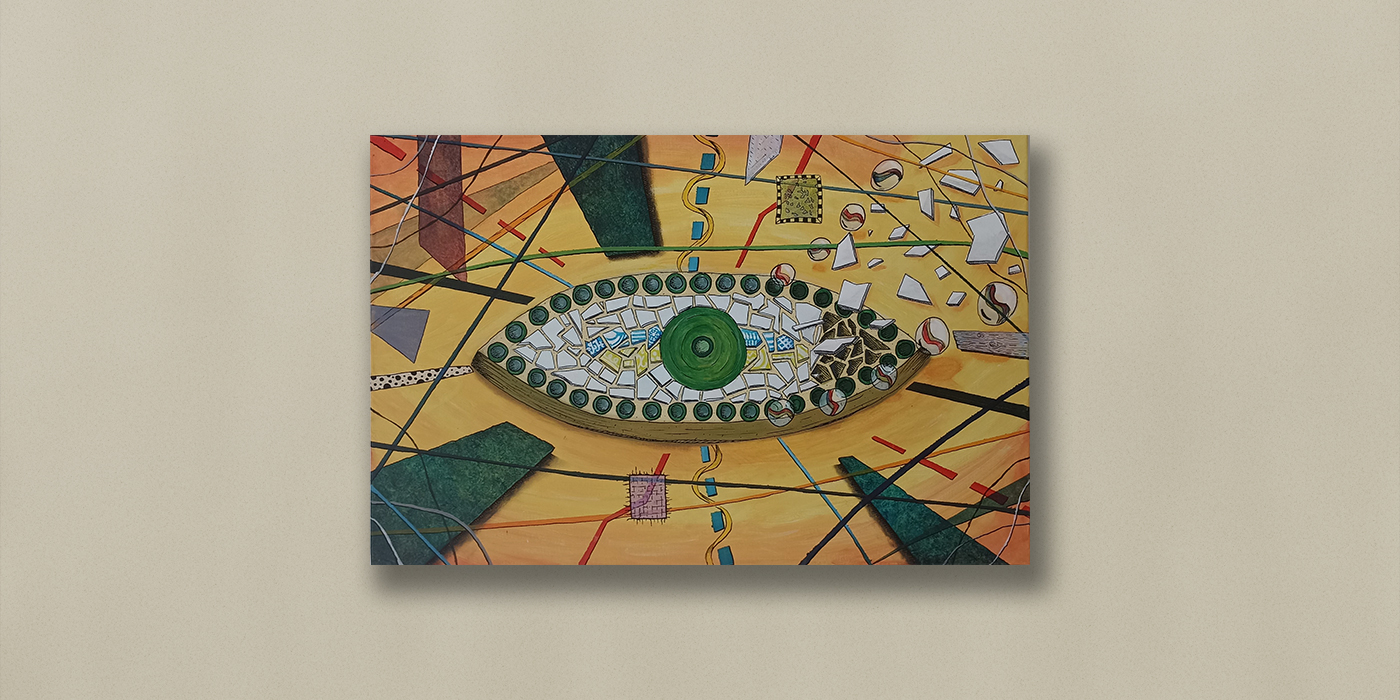Inspiré du travail du plasticien Pierre Chanteau qui a réalisé plus d’une centaine de ces yeux en mosaïque, l’œil de Pierre émerge par un entrelac de lignes et de réseaux -routes maritimes et terrestres empruntées par les migrants d’aujourd’hui- comme pour porter un regard bienveillant et solidaire sur un monde où règne tant d’inégalité.